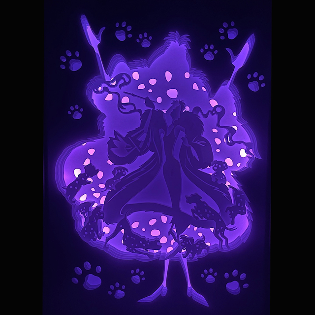 Un tableau lumineux au style chic et rebelle, inspiré de l’univers de Cruella. Entre élégance, extravagance et esprit rock, cette création rend hommage à l’icône la plus audacieuse de la mode. Parfait pour une déco qui ne passe pas inaperçue.
