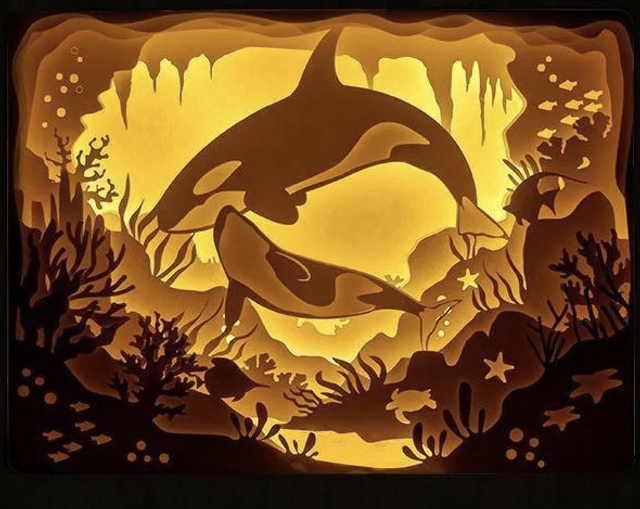 🐋 Tableau lumineux "Orques en harmonie" – 25x20 cm
